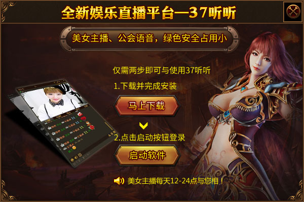全新娱乐直播视频平台——37听听盛大封测!即日起登录37传奇霸业地区服,即可与观看精彩美女表演,与美女主播互动交流!