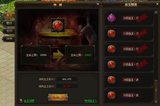 妖怪经过不断的修炼,体内会形成一种结晶,该结晶能让他们越大强大。通过击杀怪物和BOSS,玩家有机会获取妖怪体内的结晶。当结晶达到一定数量,就可以激活神器【血玉】极大提升自身的血量。
