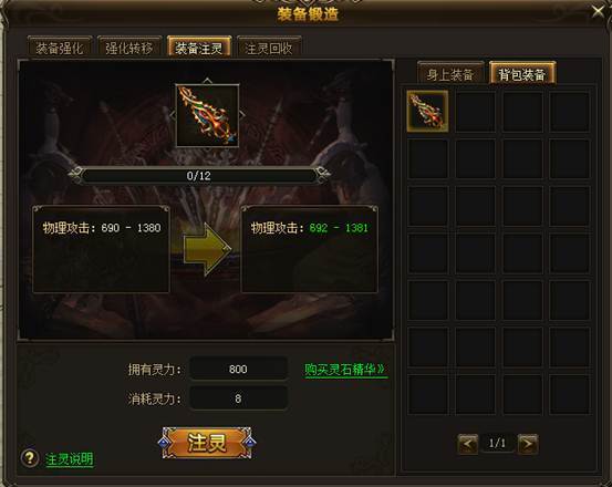 通过击杀BOSS、参加邪魔狱活动等可以获得大量的灵石精华,使用灵力给装备进行注灵,可以进一步提升装备属性。同样的,装备注灵后可以进行回收。