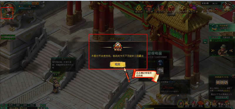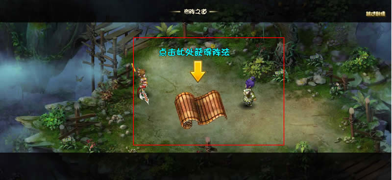 诸葛亮的内人果然也不一样,也是高人哇,在招募黄月英后的战斗中,便发明了阵法。通关相关的副本战斗后,系统带领玩家进入剧情,玩家只需要点击阵法动画,便可以获得布阵功能,如下图