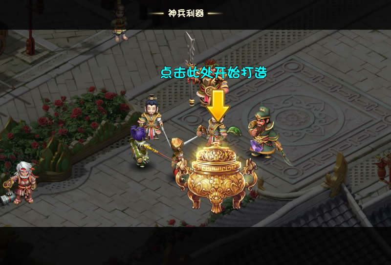 当玩家到达13级的时候,跟随剧情发展,玩家携带的武将黄月英再次显示出过人的智慧,发明了打造功能,通过打造功能玩家可以将武器装备进行进阶。进阶后的装备拥有更强的属性加成。