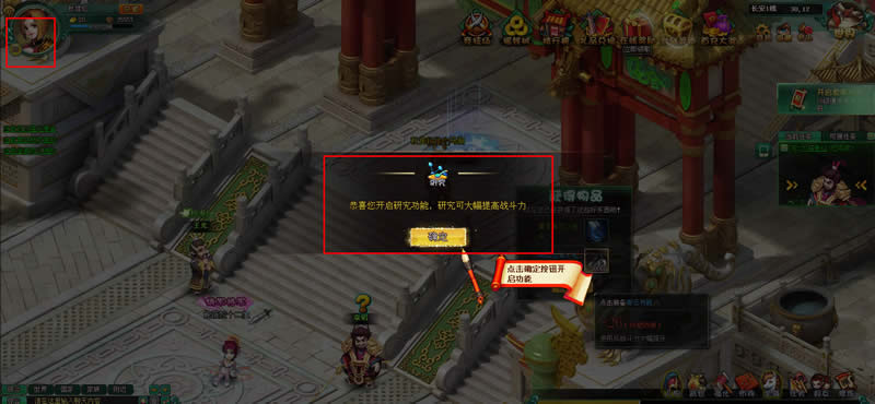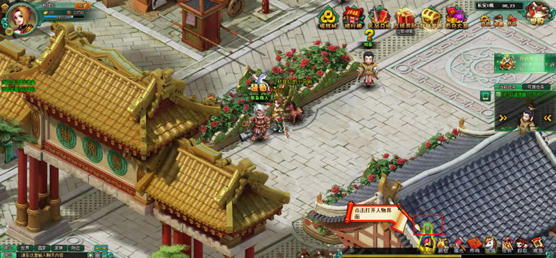 玩家点击阵法后,回到长安城,变开启了布阵功能,通过布阵功能。布阵功能放在了游戏界面下方的功能列表条中