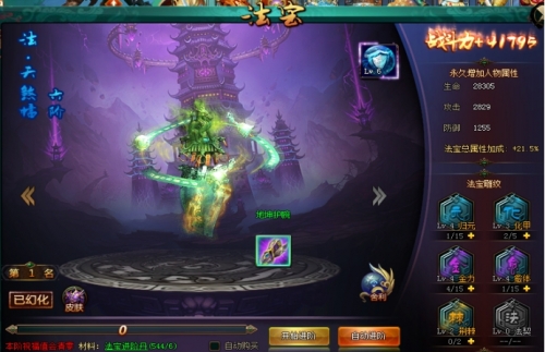 法宝系统:玩家在游戏过程中,通过游戏收集法宝进阶丹,并用进阶丹来提升法宝的品阶,从而提升属性的成长。法宝品阶越高,对于各项属性将有更高的加成。且使用法宝舍利材料可以成长法宝的属性,使得玩家可以继承该法宝更优越的属性。玩家可以通过法宝获得更高的战斗能力与生存能力。