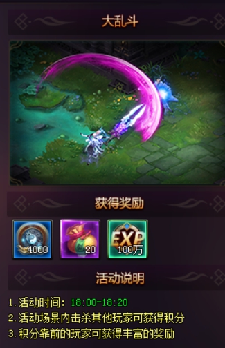 大乱斗:玩家们齐聚一堂,你争我夺,相互厮杀,只为在榜上有名,夺取灵机。积分排名靠前的玩家将获得十分丰富的奖励,快来参与争夺吧!