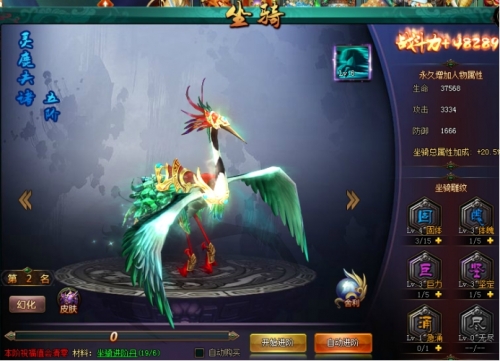 坐骑系统:玩家在游戏过程中,通过游戏收集坐骑进阶丹,并用进阶丹来提升坐骑的品阶,从而提升属性的成长。坐骑品阶越高,对于各项属性将有更高的加成。且使用坐骑舍利材料可以成长坐骑的属性,使得玩家可以继承该坐骑更优越的属性。玩家可以通过骑乘坐骑获得更高的移动速度。