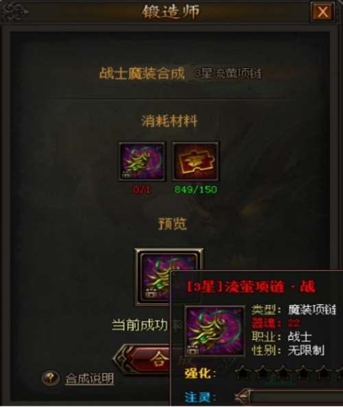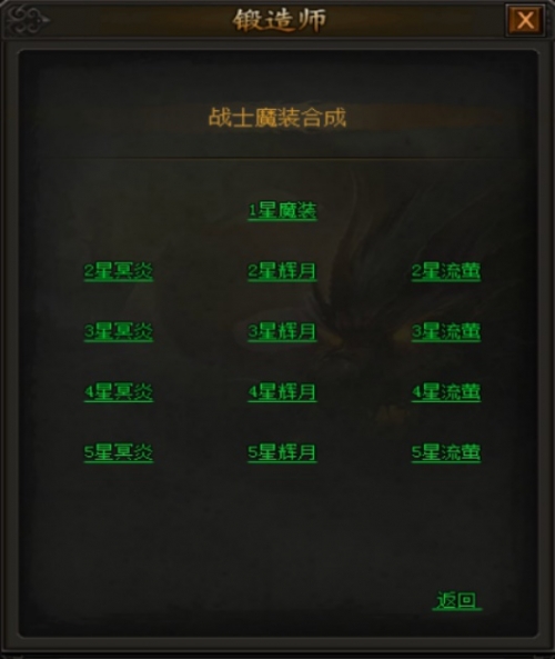 1.1、全新魔装:新增全新8件魔装,开服达到30天且角色达到80级开启,魔装可通过装备碎片合成与升级;