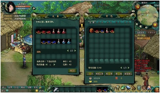点击右上方的“图”按钮打开地图,点击药品店使用自动寻路功能找到卖药品的 NPC,在商店界面选择需要购买的药品,选择购买数量点击确定购买。