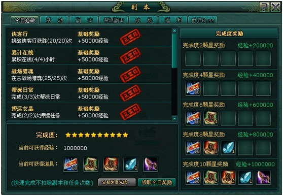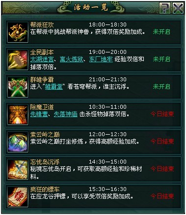首先点击“活动”能看到活动一览,活动都有时间段,基本都有经验加成奖励,很丰富