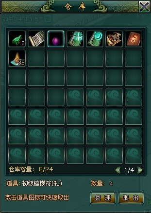 用于存放物品的空间,存放的东西不可直接使用,需要取出到背包才可使用。