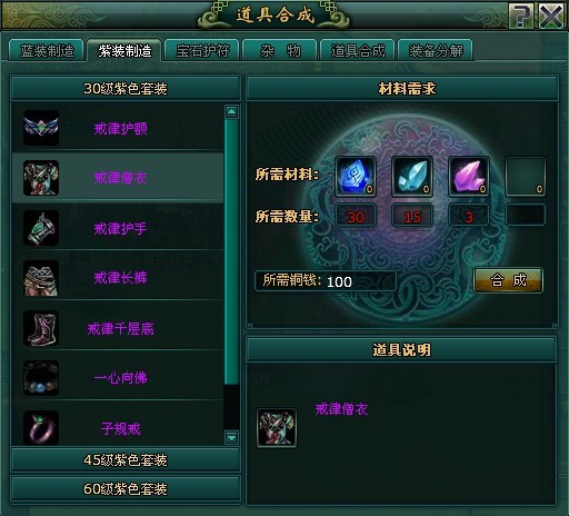 点击背包下方的“合成”按钮,进入道具合成界面,在该界面上有注明详细的合成规则,请查看规则后根据提示一步步操作噢^_^