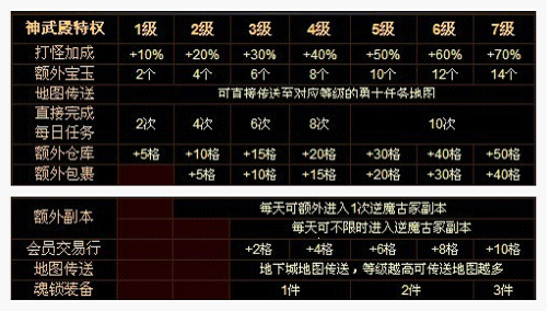 行走江湖打宝赚钱,仓库、包裹的格子的扩充,对于玩家来说非常有必要。开通VIP以后,对应各VIP等级,玩家将获得增加不同数量的仓库、包裹格子的特权,以及每天上线开箱子加成长值的福利。