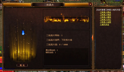 6、至此,三昧真火领悟任务完成,一级三昧真火等级,真火境界为下阶青火境。同时,您可点击界面右方查看三昧真火相关内容。