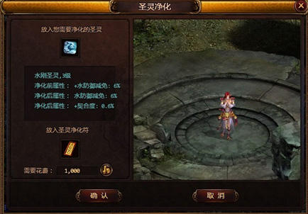 第二步:将您的圣灵石进行净化。和宝儿对话,首先在对话框中选择“法宝相关”,再选择“法宝注灵”,最后选择“圣灵净化”。将您的圣灵和对应级别的圣灵净化符放入后点“确认”。