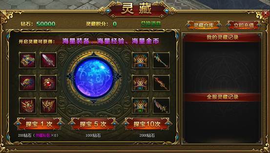 探宝获得的装备会自动放入宝藏仓库当中,可以根据需要随时取出。宝藏仓库容量巨大,再也不用担心探宝的时候背包不够用了!