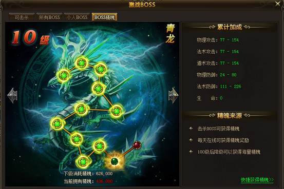 击杀强大的BOSS,不单可以获得高级装备,还能通过消耗BOSS精魄强化角色。