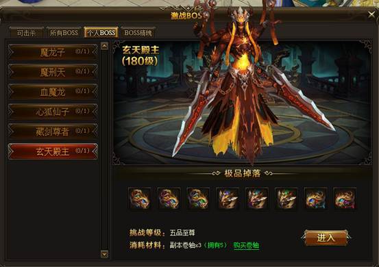 个人BOSS只能玩家个人进入挑战,无论挑战是否成功都会消耗次数。随着等级的提高,玩家可以挑战的BOSS也将越来越多。