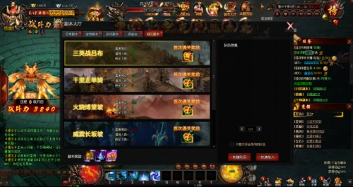 开启副本后,点击副本大厅中的武将副本进入武将副本界面。