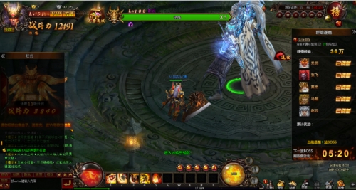 活动地图每10分钟刷新一次BOSS,根据对BOSS的伤害排名,发放不同的奖励。