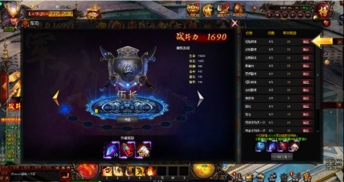 玩家通过完成主线任务开启军功系统,完成每日的各种任务提升军功值。每日军功值达到一定后还可以获得额外奖励。当前等级军功值满后即可升入下一个等级。 军功官阶越高,为玩家增加的属性和战斗力就越高。
