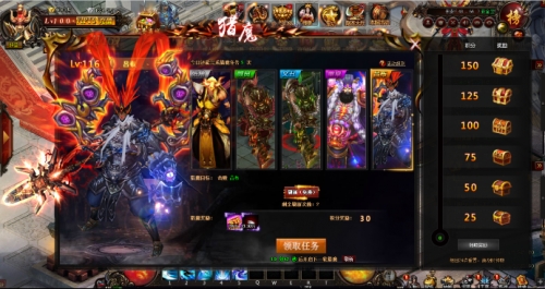 活动内容: 角色完成对应主线任务后开启猎魔功能。 玩家可以通过刷新品级更换奖励更好的任务目标! 任务目标的品级越高,回报就越高! 每日前三次可免费刷新品级,之后需要通过消耗道具封印符来刷新品级。 不同的BOSS有不同的积分,积分达到一定分数后可以换取对应的宝箱奖励!
