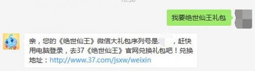 (只需要在微信里对37洋葱头发送“我要绝世仙王礼包”,洋葱头就会把机密的礼包领取序列号发你哦。)