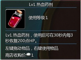 4、LV2热血药剂20个、LV1热血药剂20个、LV2生命之水20个、LV1生命之水20个