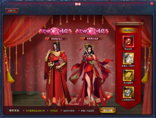 2.求婚需要满足:求婚对象为异性、双方同时在线、双方为好友状态、申请求婚人员礼金足够等条件
