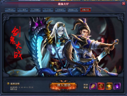 1.可以通过战场大厅-剑鬼大战参与活动