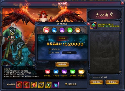 创建副本,选择副本难度,难度越高,奖励越丰厚。