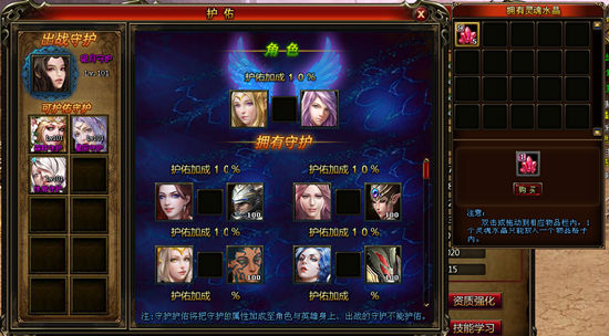 护佑可以提供大量属性加成 使用灵魂水晶可以提高护佑时属性加成比例