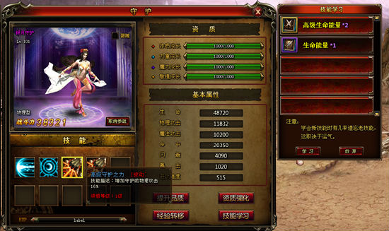 通过技能学习可以大幅提升守护的属性
