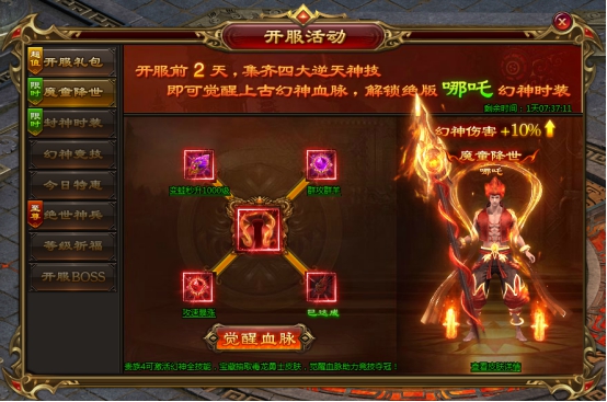 活动内容:活动期间,集齐四大逆天神技即可解锁哪吒幻神时装。