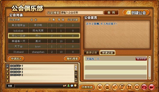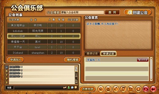 玩家可以在公会俱乐部申请加入多个公会,同时也可以撤销申请。每个玩家只能成功加入一个公会。注意:加入公会需要审批的。