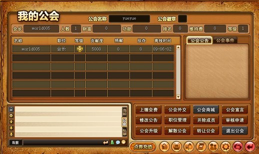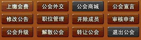 玩家在公会里可以进行上缴会费、公会外交、公会升级等操作:
