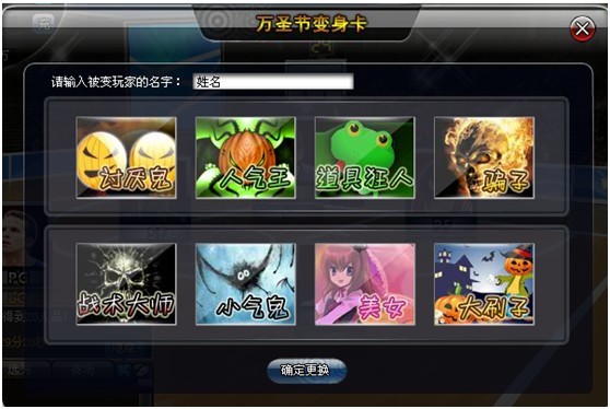 2010年10月28日-11月3日万圣节期间,您可以在道具商城购买到万圣节变身卡(100W),万圣节变身卡可以将您的好友变成很多有趣的头像