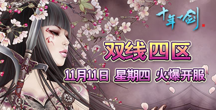 金页奖2010最受期待武侠页游37玩《十年一剑》,以写实细腻的山水背景、扑朔迷离的剧情故事、丰富多样的武功系统、创新的战斗模式、独特的占星和群英会互动玩法,受到了大量玩家的热情追捧。为了让更多的玩家可以体验游戏乐趣,我们将在2010年11月11日11:00开启双线4区,欢迎广大新老玩家届时进驻游戏,谱写一段因你而起的江湖传说!