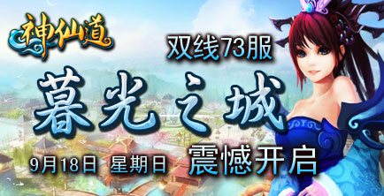 37wan平台2011最新仙侠大作,《神仙道》双线73服“暮光之城”将于9月18日(周日)10点火爆开启!《神仙道》是一款横版RPG类型的仙侠题材的网页游戏,在游戏中,玩家将自身融入一个仙侠的世界,一路斩妖除魔,经历众多冒险关卡,享受与各种妖魔鬼怪的战斗带来的打击刺激,游戏玩的就是惊险,游戏玩的就是剧情。让我们一起“修仙求道,猎命改运”。