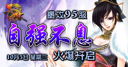 37wan最新力作《墨攻》双线95服“自强不息”将于10月5日13:00火爆开启。喜迎新版本“神州仙境”隆重上线,官方将举办丰富多彩的活动,诚挚邀请每一位玩家加入到全新版本的37《墨攻》盛宴中来!
