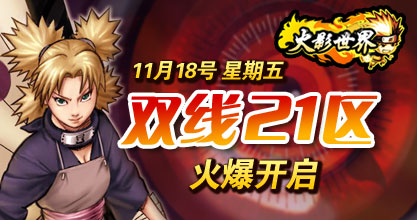 37wan超人气动漫横版网页游戏《火影世界》即将于11月18日12:00火爆开启双线21服。《火影世界》是一款横版动漫题材即时忍术动作类的Q版网页游戏,游戏融合了忍者文化精髓,集合了追踪、侦察、谍报、护送、暗杀等多方面的内容,忍术技能炫目华丽,精彩目不暇接。神秘忍界的极致画面,让你体验漫画中忍术打斗所带来的空前刺激,享受PK的快感!喜迎新服开启,系列精彩活动重磅出击,更多精彩内容助你轻松闯荡火影的世界!