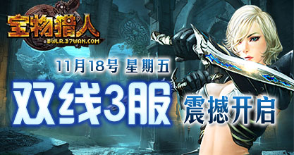 宝物猎人双线3服11月18日13点全新开启。庆祝新服开启我们将会推出丰厚的开服活动,助宝物猎人们一臂之力!探索未知的世界,远古的宝藏在呼唤,你准备好了吗?