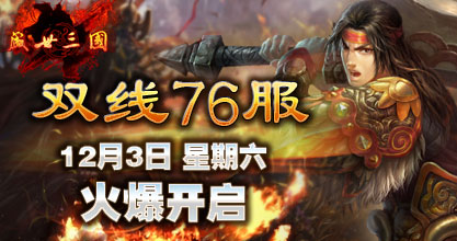 经过一系列的准备,《盛世三国》双线76服将于12月3日15:00震撼开启,与此同时,我们还为各位玩家准备了丰富的活动和好礼,助英雄们驰骋沙场!