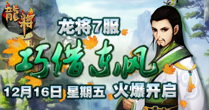 37《龙将》双线7服“巧借东风”将于2011年12月16日13:00震撼开启。精彩即将上演,超乎想象的游戏体验正期待您的加入! 喜迎新服开启,37《龙将》已为您准备了丰富的开服活动助你在三国乱世中驰骋沙场、建功立业!