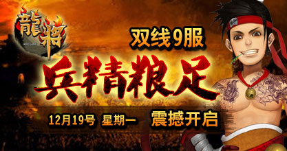 37《龙将》双线9服“兵精粮足”将于2011年12月19日13:00震撼开启。精彩即将上演,超乎想象的游戏体验正期待您的加入! 喜迎新服开启,37《龙将》已为您准备了丰富的开服活动助你在三国乱世中驰骋沙场、建功立业!