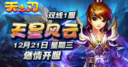 37《天之刃》双线1服“天星风云”将于2011年12月21日12:00震撼开启!丰富的开服活动,精彩的游戏内容,都在等待您的参与!