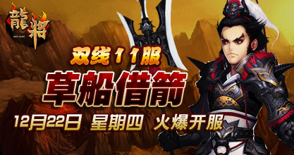 37《龙将》双线11服“草船借箭”将于2011年12月22日13:00震撼开启。精彩即将上演,超乎想象的游戏体验正期待您的加入! 喜迎新服开启,37《龙将》已为您准备了丰富的开服活动助你在三国乱世中驰骋沙场、建功立业!