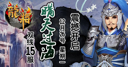 37《龙将》双线15服“瞒天过海”将于2011年12月26日13:00震撼开启。精彩即将上演,超乎想象的游戏体验正期待您的加入! 喜迎新服开启,37《龙将》已为您准备了丰富的开服活动助你在三国乱世中驰骋沙场、建功立业!