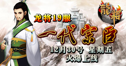 37《龙将》双线19服“一代宗臣”将于2011年12月30日13:00震撼开启。精彩即将上演,超乎想象的游戏体验正期待您的加入! 喜迎新服开启,37《龙将》已为您准备了丰富的开服活动助你在三国乱世中驰骋沙场、建功立业!
