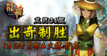 37《龙将》双线34服“出奇制胜”将于2012年1月13日11:00震撼开启。精彩即将上演,超乎想象的游戏体验正期待您的加入! 喜迎新服开启,37《龙将》已为您准备了丰富的开服活动助你在三国乱世中驰骋沙场、建功立业!
