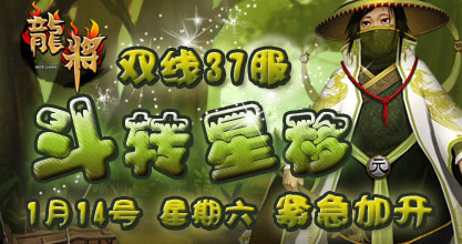 37《龙将》双线37服“斗转星移”将于2012年1月14日15:00震撼开启。精彩即将上演,超乎想象的游戏体验正期待您的加入! 喜迎新服开启,37《龙将》已为您准备了丰富的开服活动助你在三国乱世中驰骋沙场、建功立业!