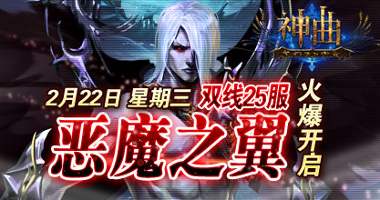 37wan《神曲》双线25服“恶魔之翼”将于2012年2月22日13:00盛世开启。《神曲》是一款以西方魔幻背景为题材的即时RPG加策略2.5D网页游戏,游戏画面采用3D渲染2D表现的方式,带给玩家精致细腻的游戏视觉感受,初期版本主要围绕城池发展、副本探索为主线而展开,作为城主的玩家通过发展城池、招募军队与魔族进行抗衡。在副本探索中玩家会经历各种不同的玩法,或追击、或逃亡、或逆袭等等,最后成为傲视一方的霸主。